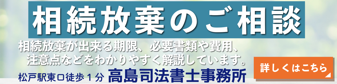 千葉県松戸市の高島司法書士事務所(松戸駅東口徒歩1分)では、2002年2月の開業以来、20年以上にわたり相続放棄の手続きを多数取り扱ってまいりました。